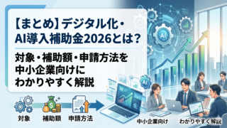 未分類 【まとめ】デジタル化・AI導入補助金2026とは?対象・補助額・申請方法を中小企業向けにわかりやすく解説 2026年からIT導入補助金が「デジタル化・AI導入補助金」に改称。対象企業・補助額(最大450万円)・申請スケジュール(1次締切:5月12日)を解説。人事・勤怠・採用ツールも対象。無料相談受付中。 2026.04.19 未分類